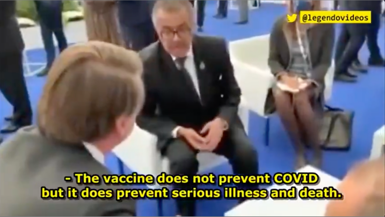 Footage of WHO Director at G20 Summit : The Vaccine does NOT PREVENT COVID