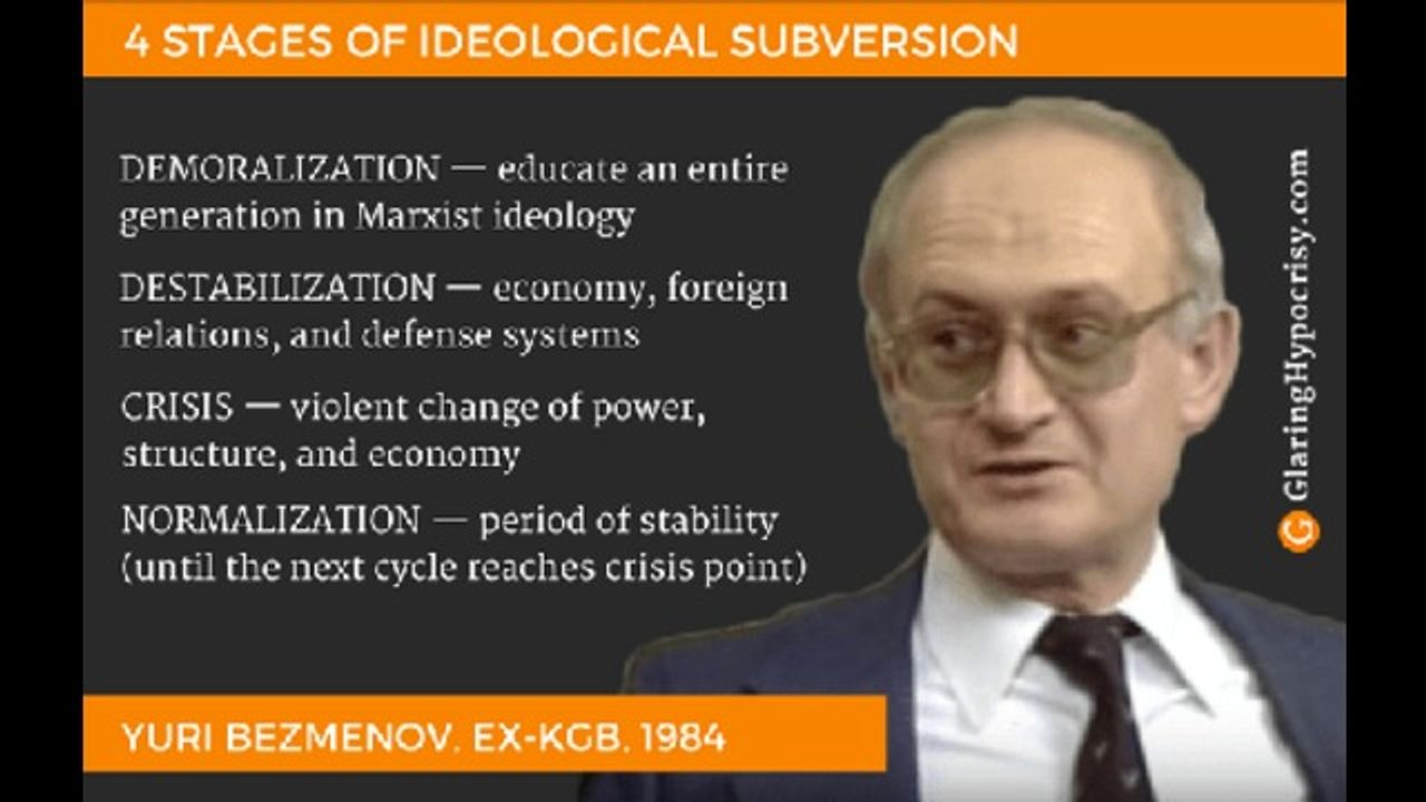 Former KGB asset and Russian defector Yuri Bezmenov reveals the Soviet plan of subverting the United States of America with Idealogical Subversion. He reveals the steps of this subversion