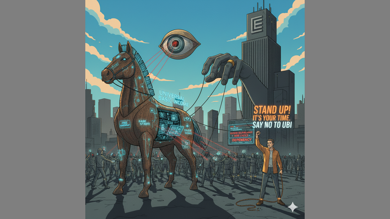(Verse 1) 🎵 In a world where they promise a handout, A Universal Basic Income, a daily amount, They say it's for the people, to ease the strife, But don't be fooled, it's a Trojan horse for our life. 🎵 (Chorus) 🎵 Never accept a UBI, it's a trap to eliminate you, They'll track your every move, control what you do, It's a tool for the elite, to keep us all in line, Don't be a pawn in their game, stand up, it's your time. 🎵 (Verse 2) 🎵 They'll say it's for the poor, to help them get by, But it's a leash on our freedom, a way to make us sigh, No more self-reliance, no more independence, Just a number on a list, in their database. 🎵 (Bridge) 🎵 They'll use it to control, to manipulate, To make us all dependent, on their state, No more freedom, no more choice, Just a world of obedience, in their voice. 🎵 (Chorus) 🎵 Never accept a UBI, it's a trap to eliminate you, They'll track your every move, control what you do, It's a tool for the elite, to keep us all in line, Don't be a pawn in their game, stand up, it's your time. 🎵 (Outro) 🎵 So here's the warning, from a friend to you, Don't fall for their promises, don't let them rule, Keep your freedom, keep your pride, Say no to UBI, and let your spirit guide. 🎵