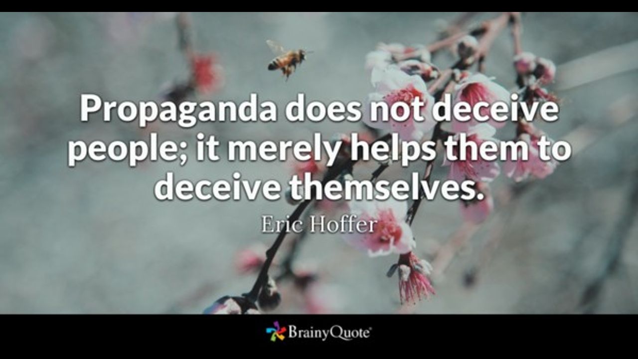 QUOTE ,, Propaganda does not deceive people; it merely helps them to deceive themselves. Eric Hoffer
