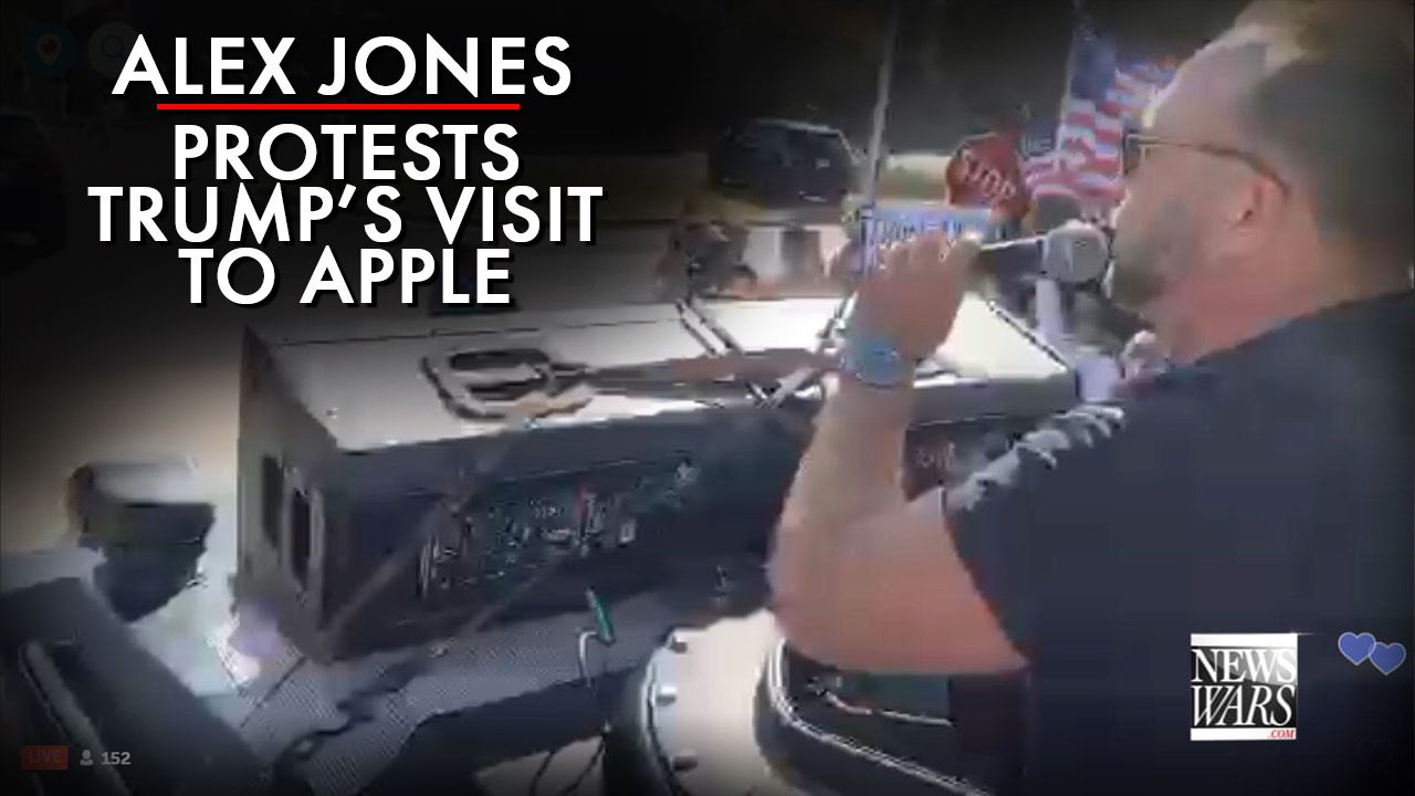 Alex Jones Protests Trump's Visit To Apple
