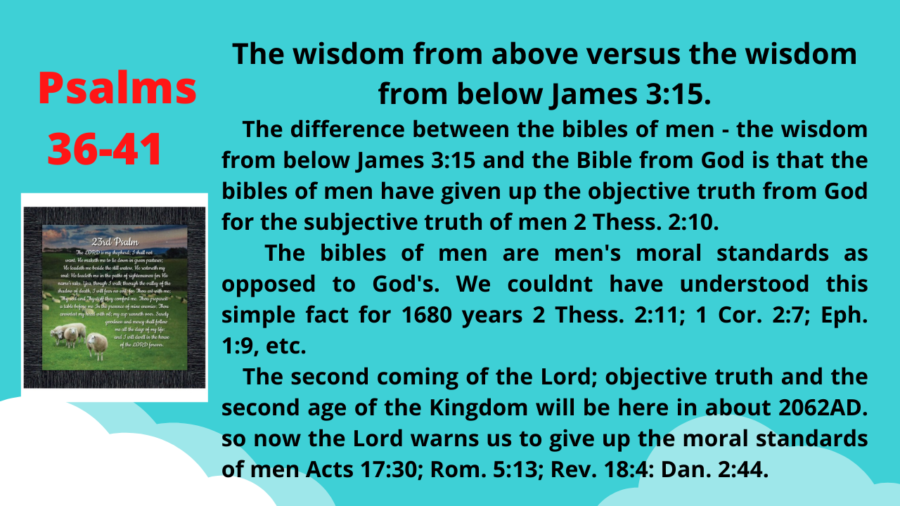 Psalms 36-41-The 2nd coming of the Lord; The Restored Bible & Kingdom will be here in about 2062AD.