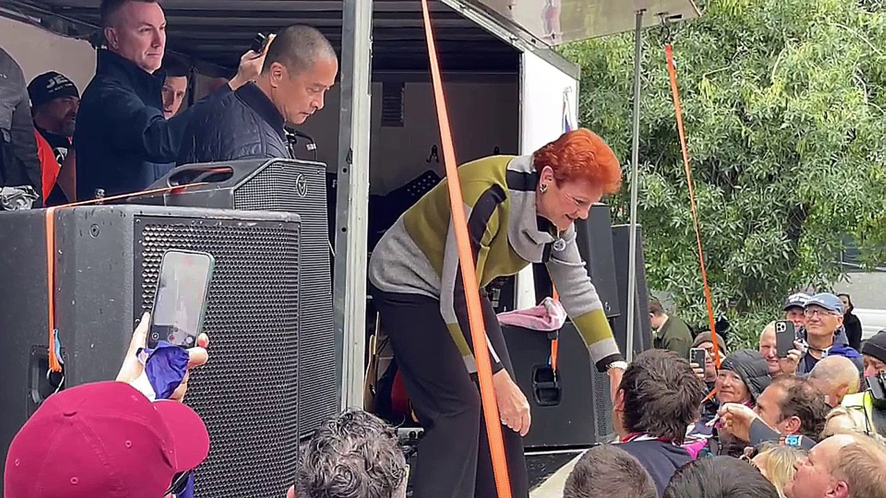 The rally arrived at Flagstaff Gardens to assemble for speeches. The first lot of speeches were mostly given by political people (hence the title), and the star politician to speak was Federal Senator Pauline Hanson who received a mostly happy reception. Other speakers (and singers) were Pastor Paul, Morgan Jonas, Kelli (popular freedom singer), Eli Patterson, Matt Emerson (Family First), Warren Pickering (One Nation), Ricky Lee Carol (One Nation in Regional Victoria).