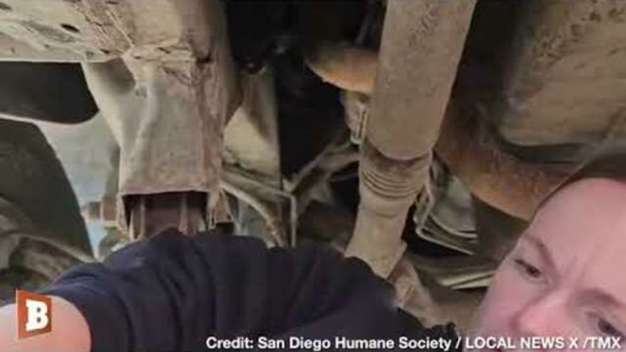 POOR KITTY! A cat was rescued after the feline got her head stuck in a truck's frame, as shown in a video released by the San Diego Humane Society recently. The cat was found after the truck driver heard meowing while stopped temporarily at a stop sign. The cat was sedated and successfully removed, then taken to receive medical treatment and is "safe and sound," according to the San Diego Humane Society.