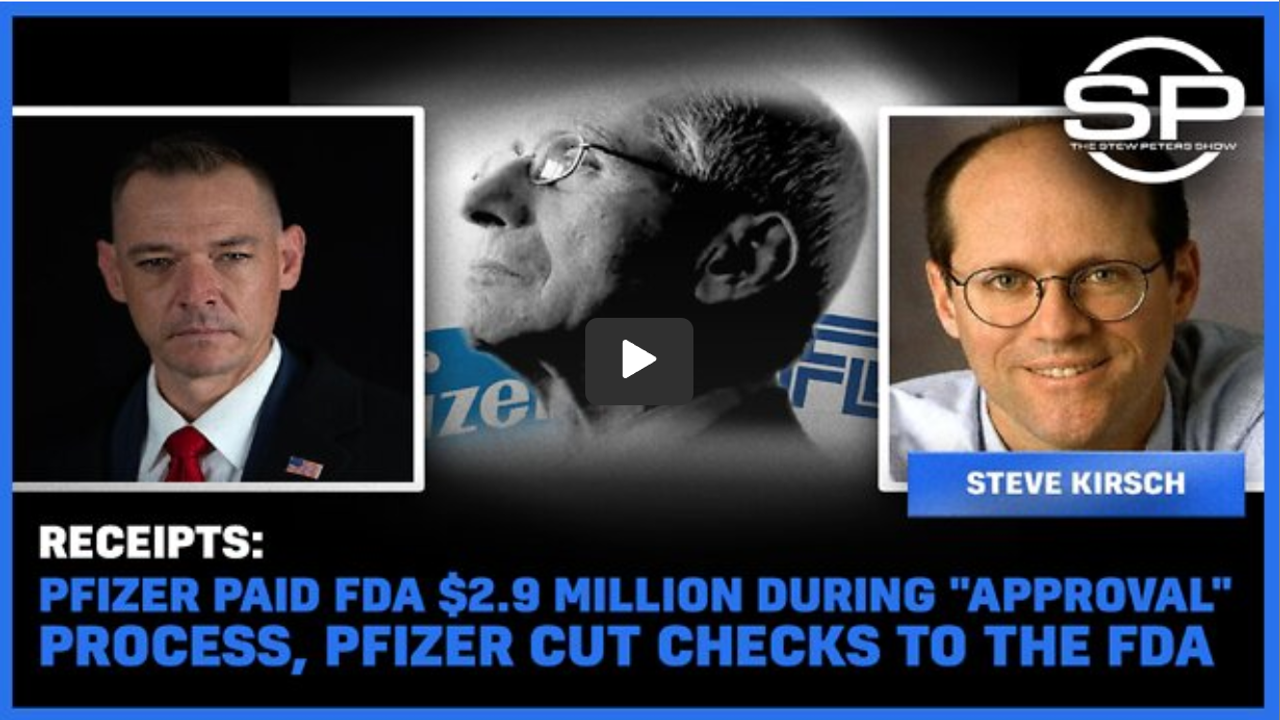 Big Pharma has colluded with the FDA to approve and inject their bioweapon jabs into the arms of the unsuspecting public. Steve Kirsch joined the Stew Peters Show Wednesday to evaluate a massive payment from Pfizer to the FDA, which appears to be a $2.9 million bribe for quick and clear passage of their experimental shots. Both have worked to block adverse events data regarding the jabs, and now, they’re working together to poison and kill Americans. Don't miss this shocking segment!