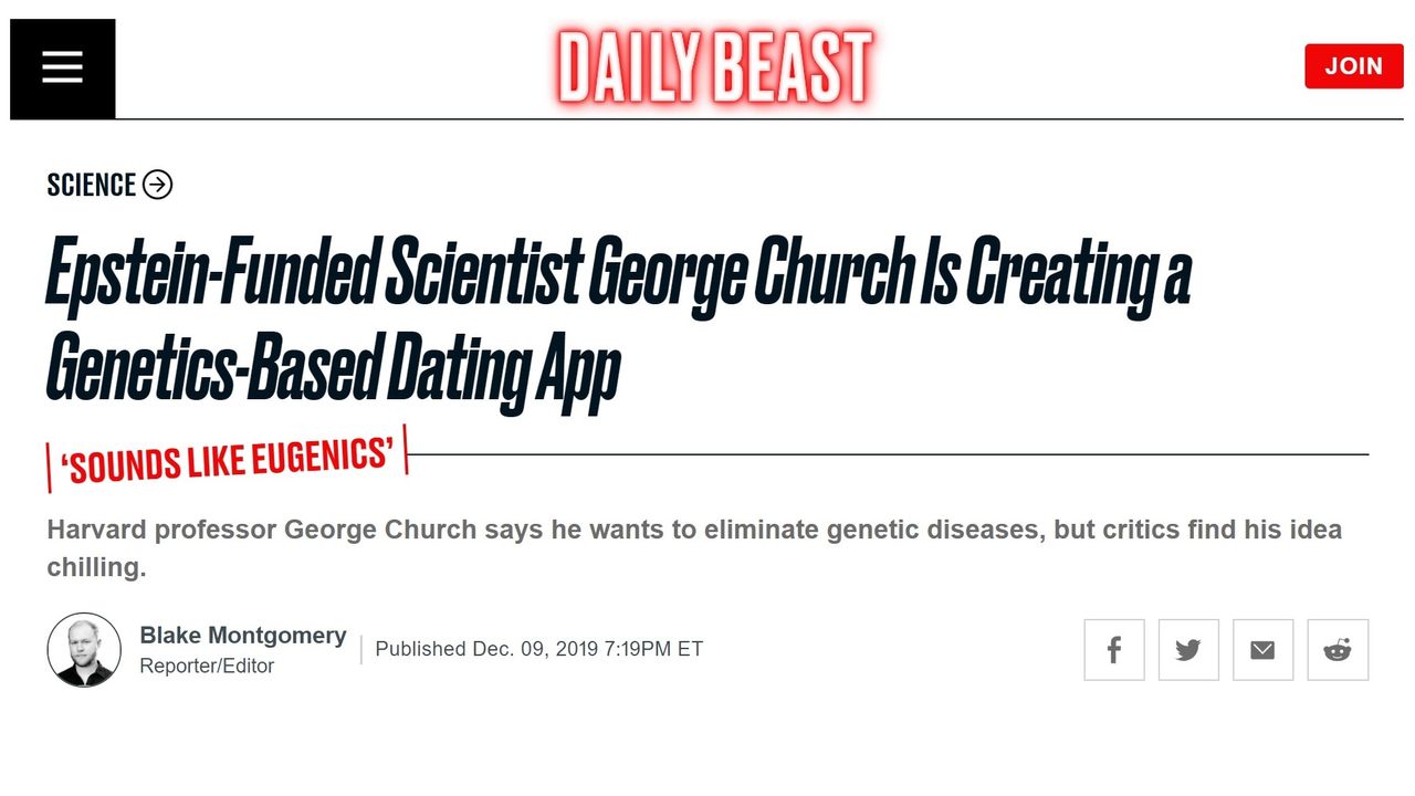 FATHER OF HUMAN GENOME PROJECT FINANCED BY EPSTEIN, DARPA, THE SCHWAB/HITLER-LINKED WYSS INSTITUTE