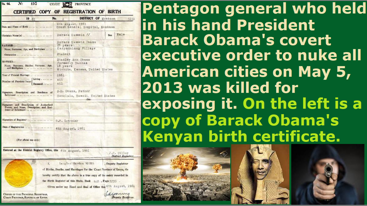 General who exposed Barack Obama's executive order to nuke all American cities on 5.5.13 was killed