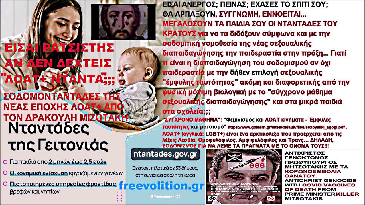 ΕΙΣΑΙ ΑΝΕΡΓΟΣ; ΠΕΙΝΑΣ; ΕΧΑΣΕΣ ΤΟ ΣΠΙΤΙ ΣΟΥ; ΕΙΣΑΙ ΡΑΤΣΙΣΤΗΣ ΑΝ ΑΡΝΗΘΕΙΣ ΤΙΣ ΚΡΑΤΙΚΕΣ ΝΤΑΝΤΑΔΕΣ ΑΚΟΜΗ ΚΑΙ ΛΟΑΤ+ ΤΟΥ ΔΡΑΚΟΥΛΗ ΜΙΖΟΤΑΚΗ; https://ntantades.gov.gr . https://ugetube.com/watch/WR3EW1w5XGQrCR2 , https://rumble.com/vzeuq2-mitsotakis-sodomite-state-ntantades.gov.gr.html .