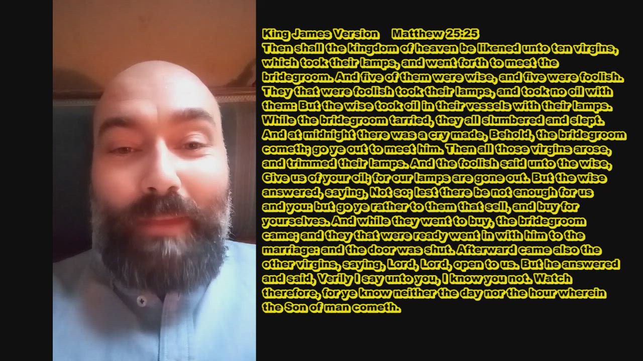 Jesus gave me a word, the meaning of the oil in the story about the ten virgins of the bible, and rejoiced when I offered to share it in context with whoever wants to listen. The holy spirit has aided me in the recording of this video.