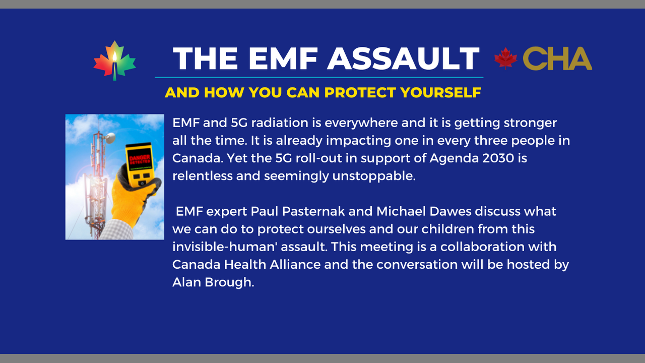 EMF and 5G radiation is everywhere and it is getting stronger all the time. It is already impacting one in every three people in Canada. Yet the 5G roll-out in support of Agenda 2030 is relentless and seemingly unstoppable. EMF experts Paul Pasternak and Michael Dawes discuss what we can do to protect ourselves and our children from this invisible-human’ assault.