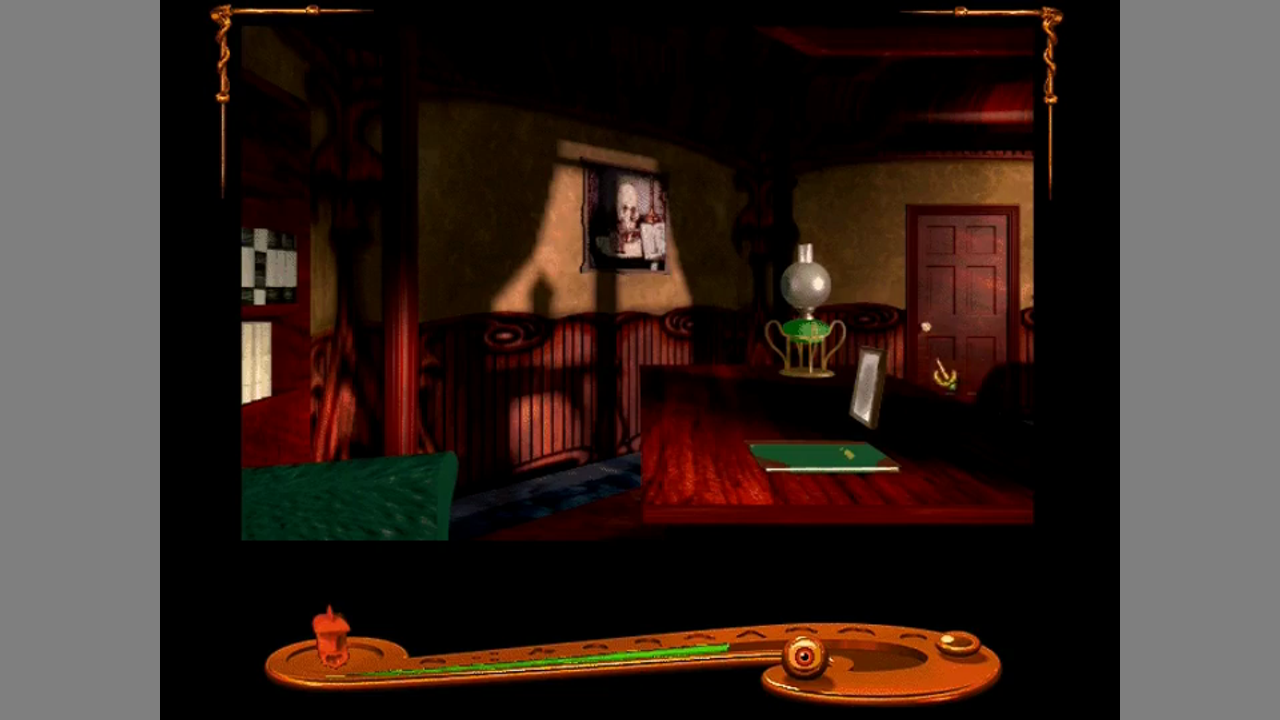 Shivers is very similar to Myst. The game is played from a first-person view, using static, pre-rendered images for the environment. You move around by clicking when your cursor turns into a directional arrow. Puzzles are similar to Myst, consisting of logic puzzles, mechanisms and information to find in texts or the surroundings. You can sometimes find items, but you can only carry one item at a time, and there are hardly any inventory puzzles. At certain places, you might encounter a ghost. If this happens, the ghost will take way a part of your lifeforce. Naturally, it's game over if you loose all of it.