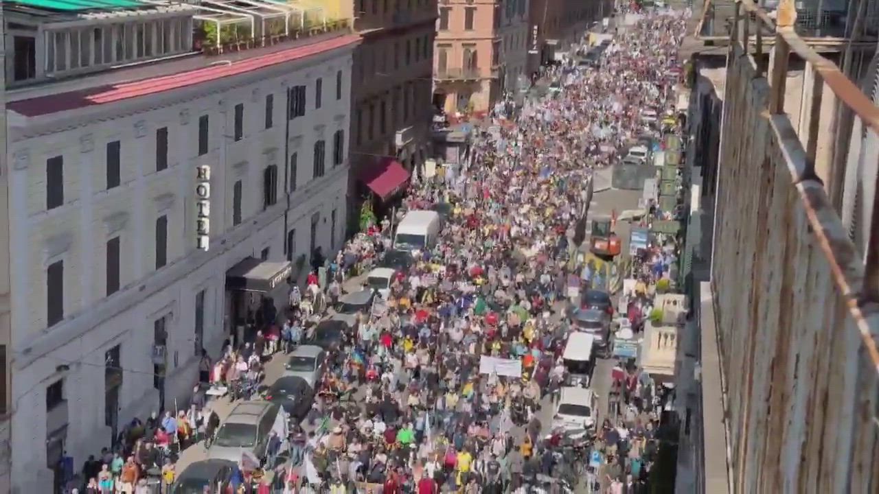 Massive protests erupted in Rome as Italians rallied against the EU’s rearmament plan.