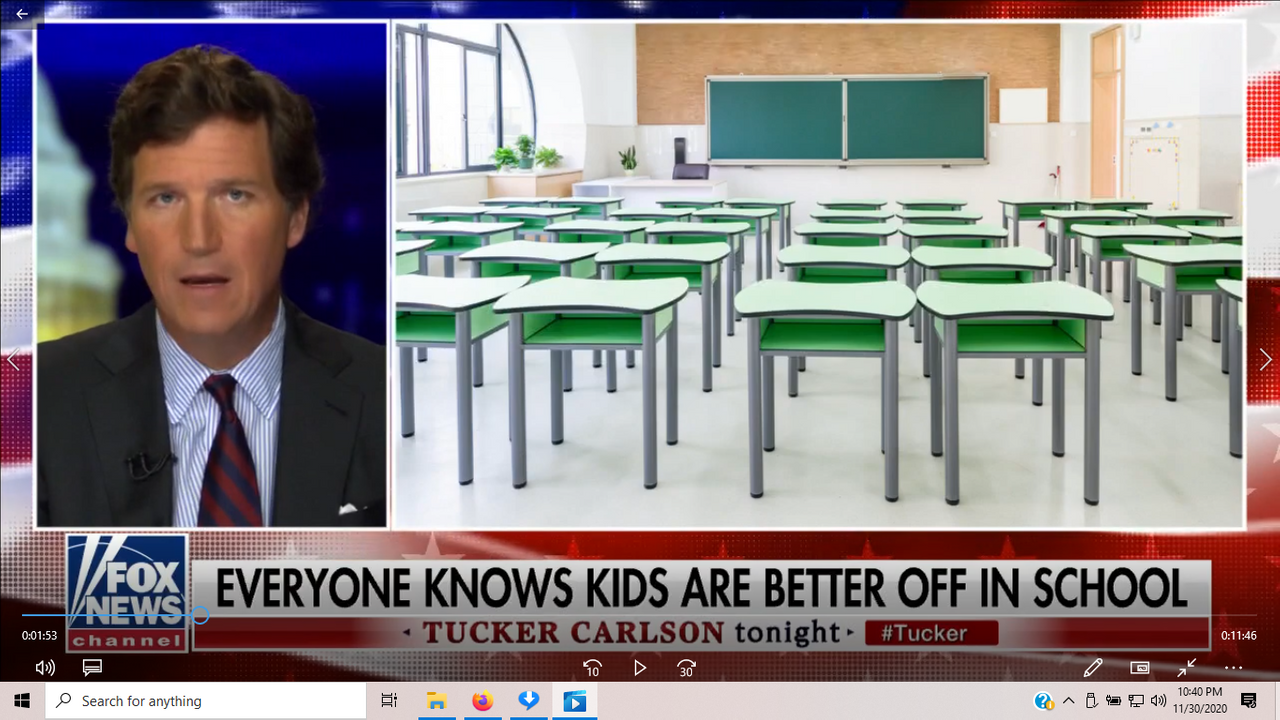 TUCKER CARLSON 11/30/2020:EVERYONE KNOWS KIDS ARE BETTER OFF IN SCHOOL! NOT EVERYONE.SEE BELOW!
