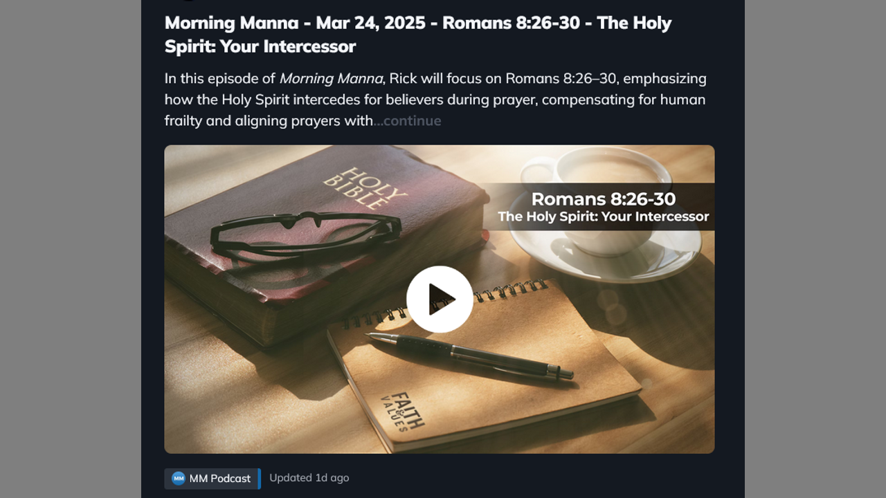 In this episode of Morning Manna, Rick will focus on Romans 8:26–30, emphasizing how the Holy Spirit intercedes for believers during prayer, compensating for human frailty and aligning prayers with God’s will. Rick explains how this divine intercession provides comfort, assurance, and strength, especially when words fail during prayer. He stresses that the Holy Spirit is an advocate, transforming weak human petitions into powerful, divinely acceptable pleas. The episode also explores the theological concept of predestination, affirming God's sovereign plan of salvation and how believers are predestined, called, justified, and ultimately glorified. Rick offers encouragement to pray with renewed confidence, knowing the Holy Spirit ensures the Father hears and accepts our prayers.