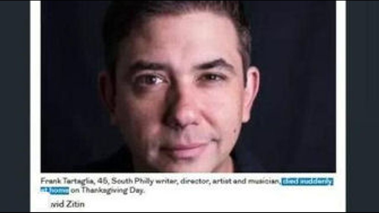 On Thanksgiving Day, just weeks after his first major film headlined the Philadelphia Festival, Frank Joseph Tartaglia died suddenly in his sleep at his family home in South Philadelphia. He was 45.