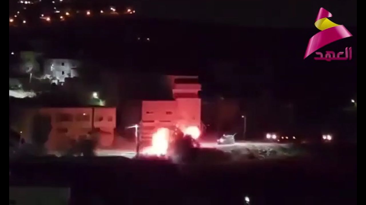 The moment an IDF armored vehicle was blown up by a land mine in a square in the Azune refugee camp in Qalqilya on the West Bank of the Jordan River