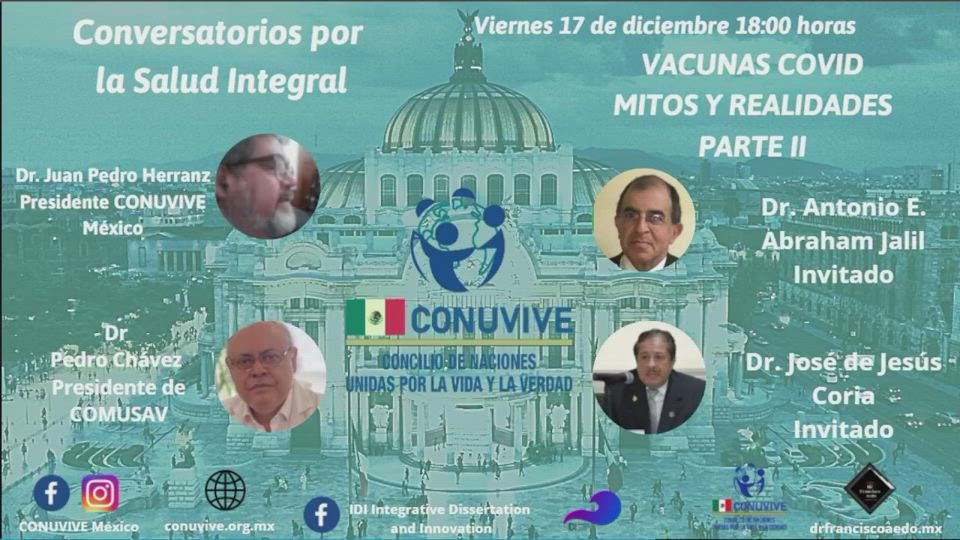 #IDI y #CONUVIVE México te invitan al Conversatorio de Salud Integral, conduce Dr. Juan Pedro Herranz, Presidente CONUVIVE México, con el Tema -Vacunas COVID, Mitos y realidades