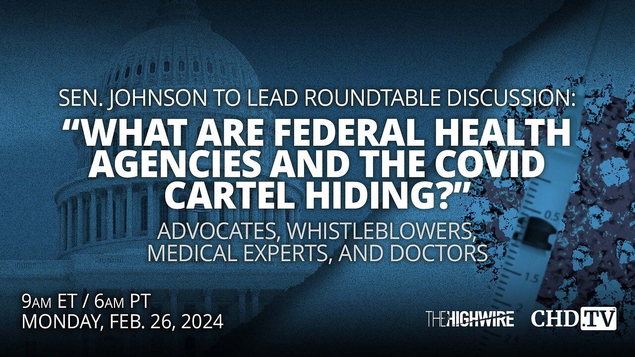On Monday, Feb. 26, 2024 U.S. Sen. Ron Johnson (R-Wis.) led a roundtable discussion titled, “What are Federal Health Agencies and the COVID Cartel Hiding?” Sen. Johnson and a panel of experts exposed the truth about how the COVID Cartel – federal health agencies, Big Pharma, legacy media, and Big Tech – engaged in censorship and coverups. This discussion also shines a light on the failures and corruption of the global elite and their institutions.