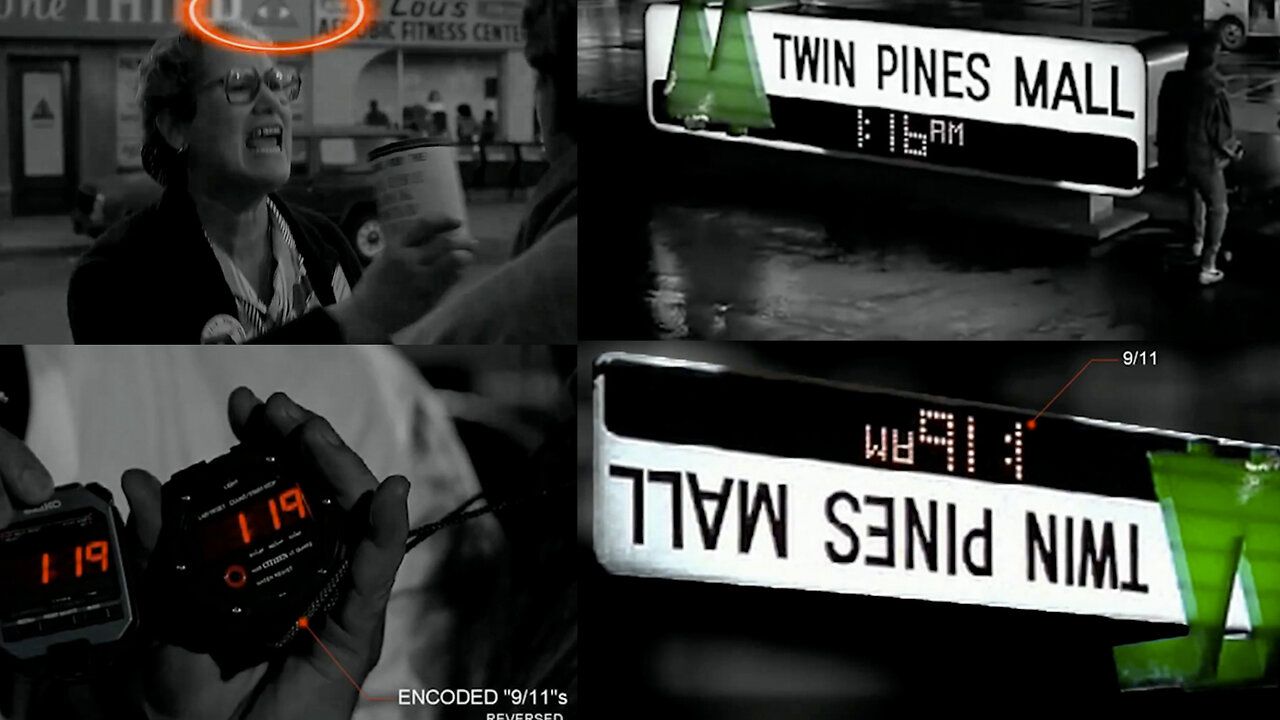 Back to the Future | Was Back to the Future Predicting the Events of 911 In Great Detail? Twin Pines Mall, After Attack, Twin Pines Are Replaced With a Sole Pine, Doc's Two Stop Watches, Both of Which Are 119 <> Mirrored 911