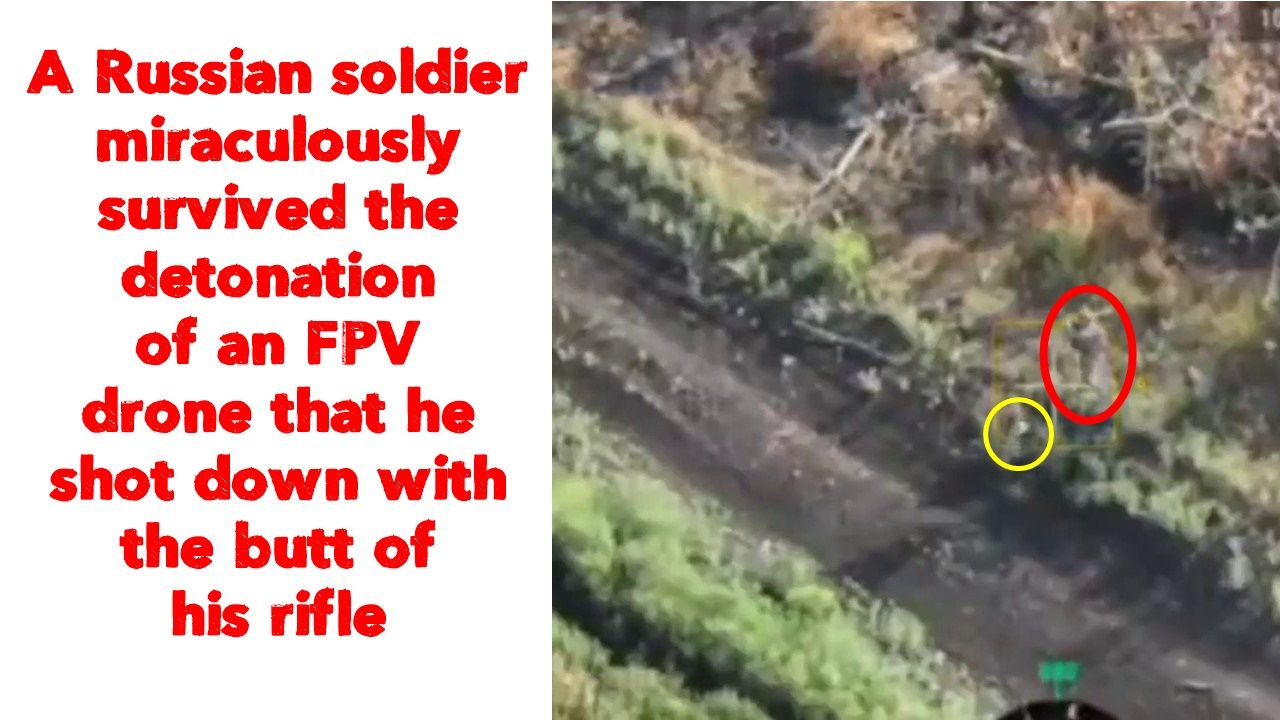 π·πΊπΊπ¦A Russian soldier miraculously survived the detonation of an FPV drone that he shot down with the butt of his rifle.