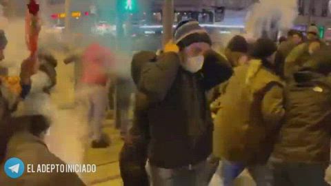 La policía al servicio de Macron, el cual es un vendido al globalismo de los Rosthchild y de Klaus Swab lanza "democráticos" gases lacrimógenos contra un pueblo que reclama pacíficamente LIBERTAD y que rechaza las medidas covid de control.