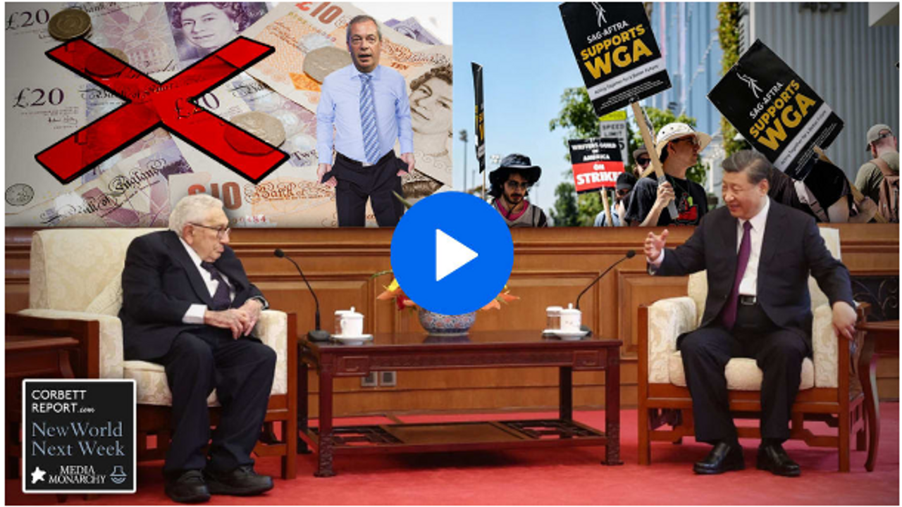 This week on the New World Next Week: Kissinger meets old buddy Xi Jinping in Beijing to discuss the New World Order plan; the banksters prepare the public for the age of debanking; and the Hollyweird strike portends the new era of deepfake unemployment.