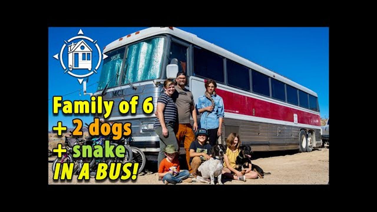 Big family - 6 people, 2 dogs & a snake - living in a bus!