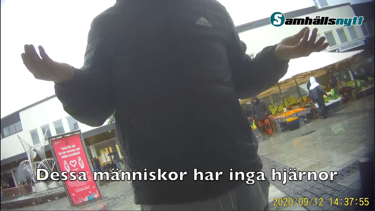 Vår reporter intervjuar boendes i Rinkeby, den 12 september 2020. DE ger uttryck för att "svenskar inte har några hjärnor", att "vi kan bränna hela Sverige" och pratar om att "detta är vårt område". Det uttrycks även mordtankar mot de som bränner Koranen och uttrycker judehat