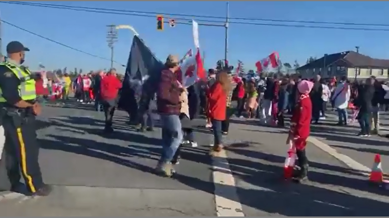 Canada BC US Border Feb12th Surrey British Columbia Washington State Covid Mandates Protesters