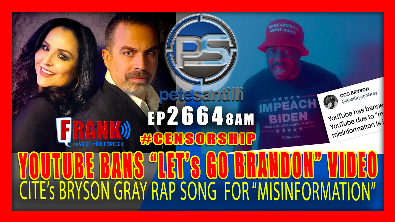 EP 2664-8AM YouTube Bans Rapper Bryson Gray's 'Let's Go Brandon' Song - Cites "MISINFORMATION" https://thepetesantillishow.com/archives/19077