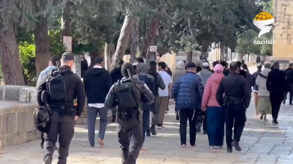 Dozens of Israeli settlers entered the Al-Aqsa Mosque compound in Jerusalem’s Old City, accompanied by Israeli security forces, in an action that may heighten tensions with Palestinian worshipers.
