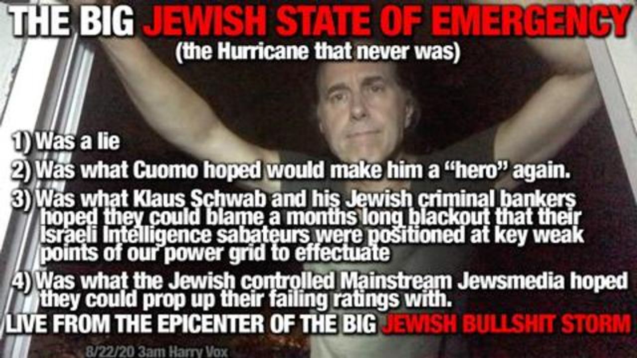 It's 3:00 AM and after Cuomo and his Jewish masters locked down and evacuated large number of people from the "big storm" all there is is perfect quiet, crickets, stillness, and not a single drop of rain. NOTHING.