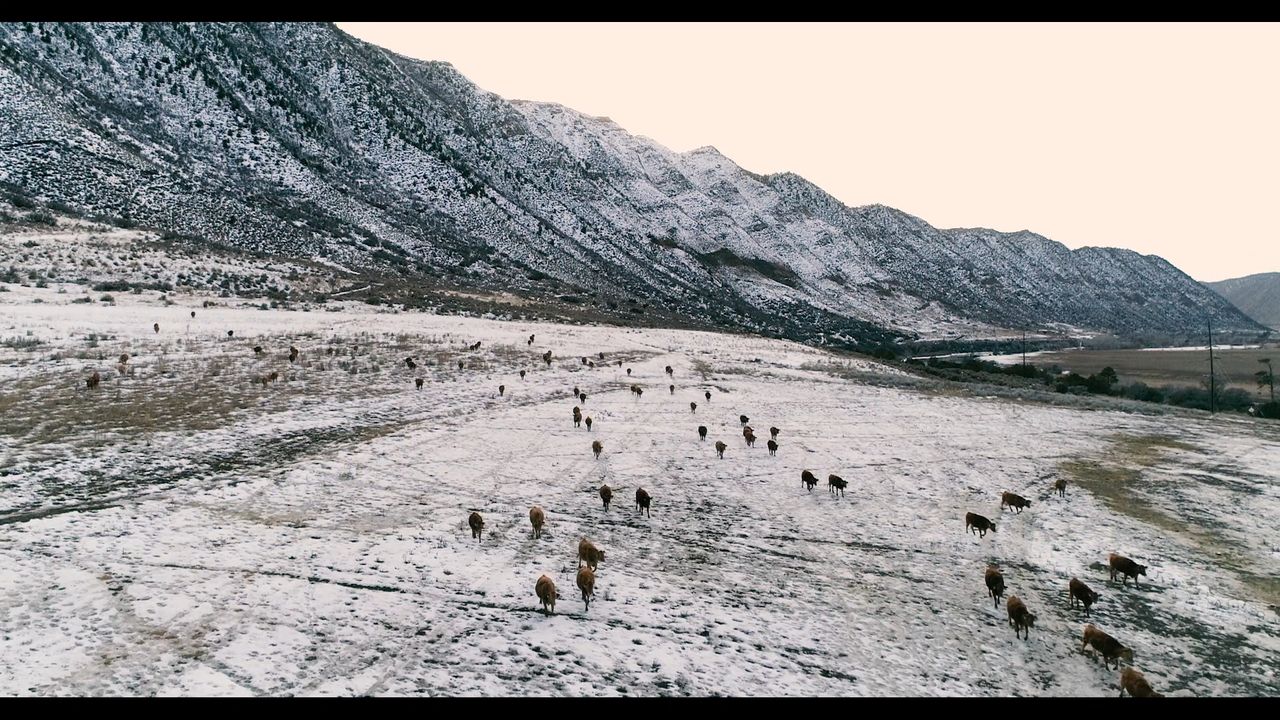 Nutrient Farm cows come down the mountain to feed in the evening. The farm is nestled right at the foot of the mountains in western Colorado, our Akaushi Wagyu cows get to roam natural elements as nature intended.