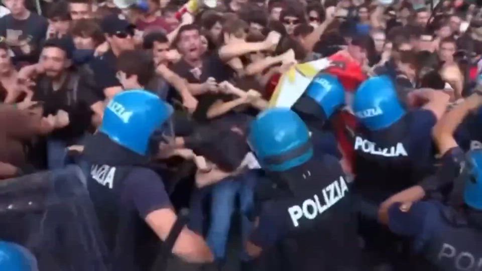 Students marching in support of Palestine clashing with police in Rome.
