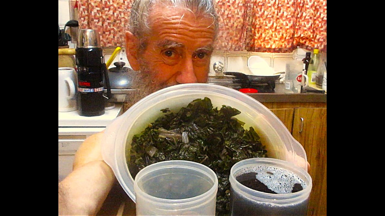 Last night JK steamed 3 bunches of silver beet, and some baby Royal Blue potatoes that I grew and had just harvested this week. The liquid is so dark and enticing, full of at least minerals, if not vitamins and so on, that I cannot bear to discard it. I will refrigerate it and drink it over the next few days.