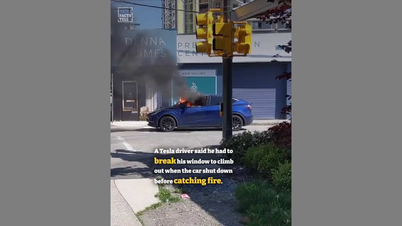 Electric car shuts down, traps the driver inside, then catches fire.