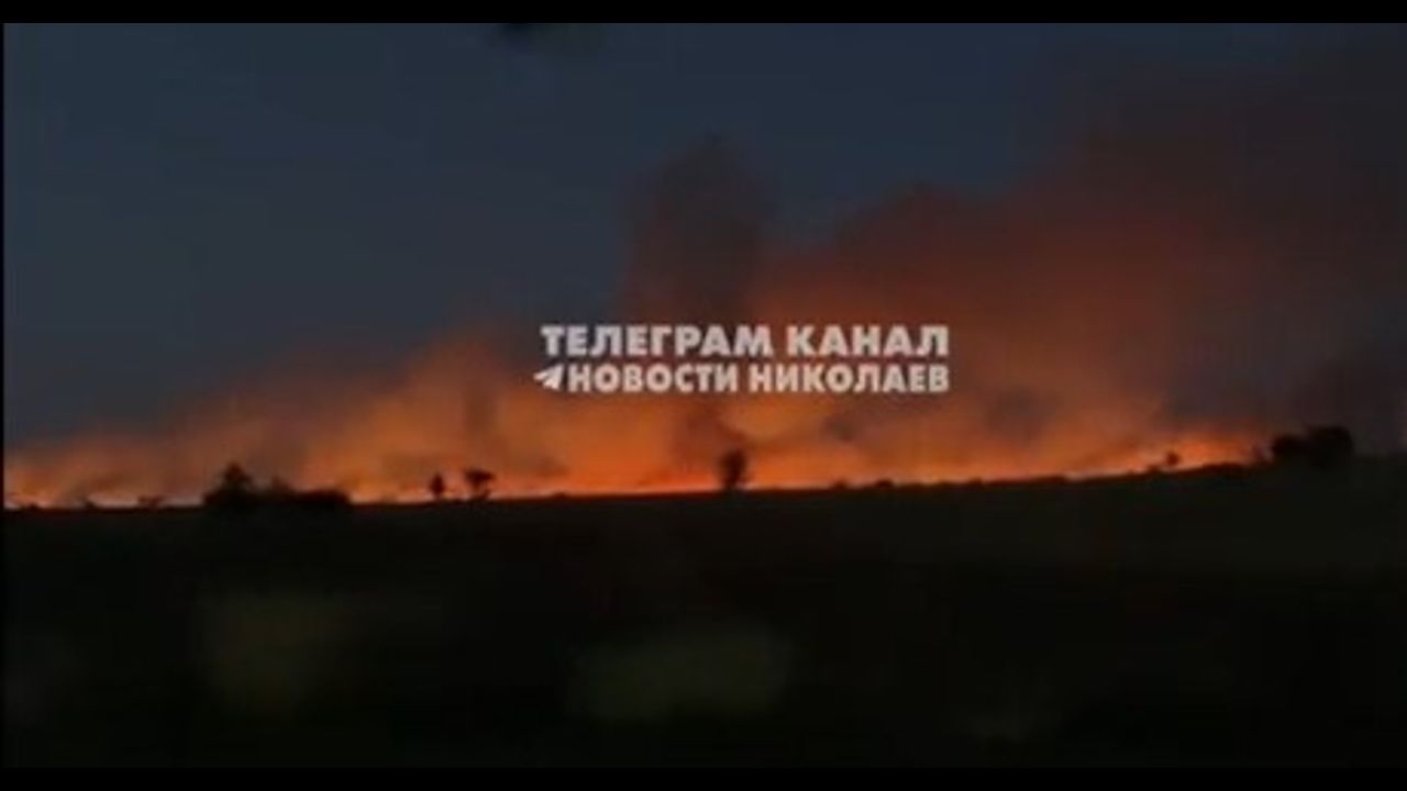 An ongoing fire at the airfield in Voznesensk (Nikolaev region). Apparently, fuel containers continue to burn after the arrival of Russian missiles.