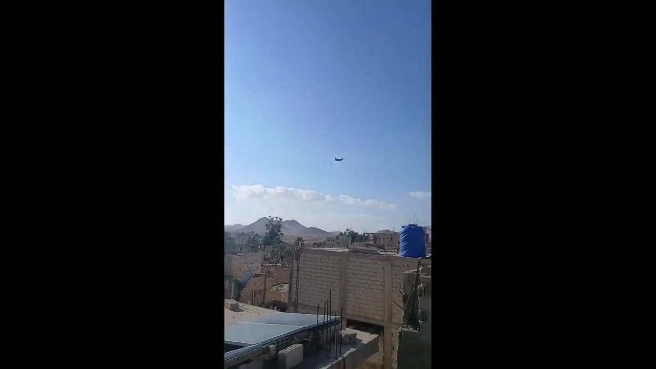 The footage shows the flight of an F-16 fighter jet of the US Air Force over Palmyra and the blocked road from Deir ez-Zor to Palmyra.