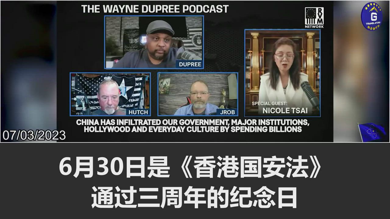 7/3/2023 【妮可做客韦恩·杜普里播客节目】妮可:在《香港国安法》通过后,任何倡导香港不受中共管制的自由的言论均被视为犯罪,只有附和中共宣传或充当其传声筒的媒体才能在香港生存,最近一家香港知名电台被中共切断捐款资金的是就很说明问题。