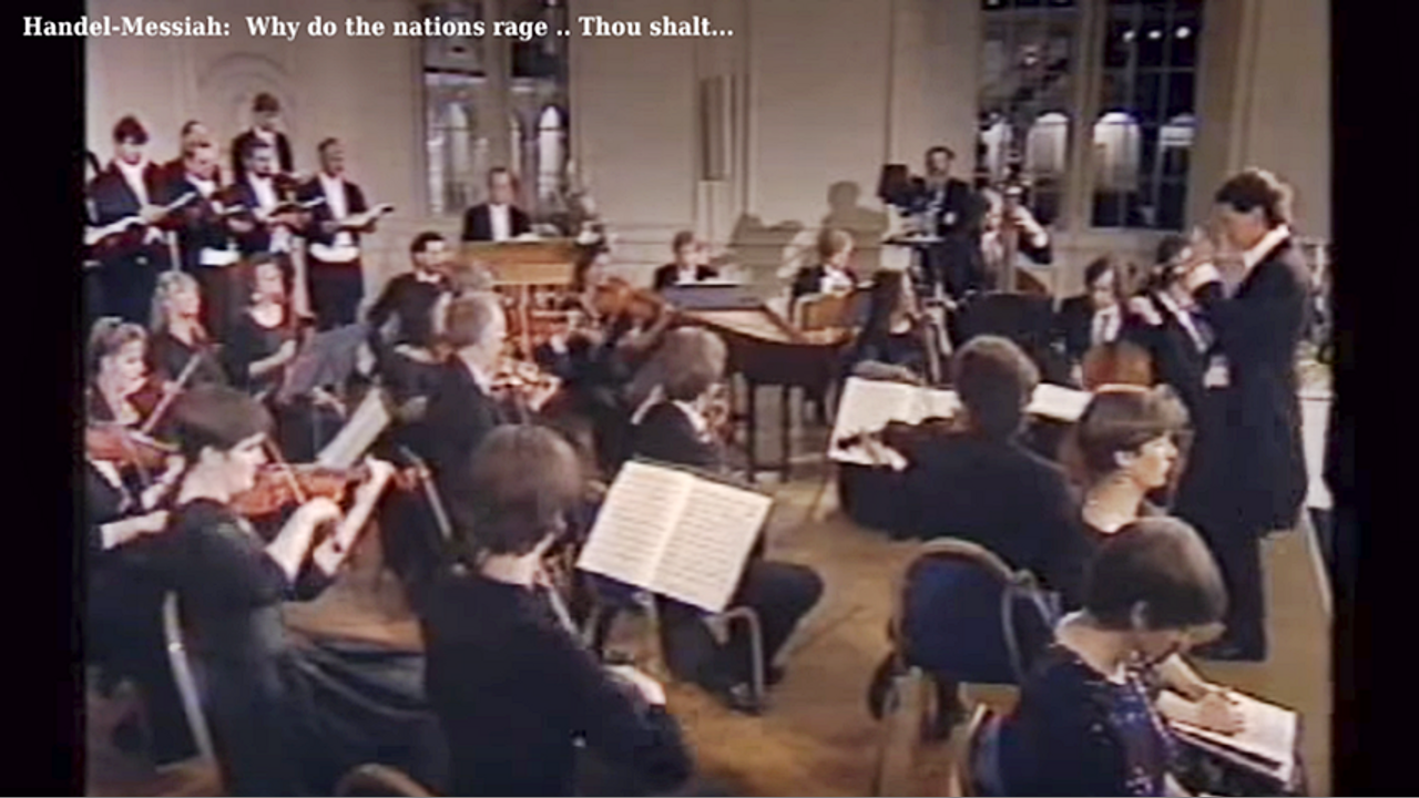 (41) Aria : Why do the nations (heathen) rage; (42) Chorus (performing the part of the raging heathen): Let us break their bands; (43) Recitative: He that dwelleth in heaven; (44) Aria: Thou shalt break them