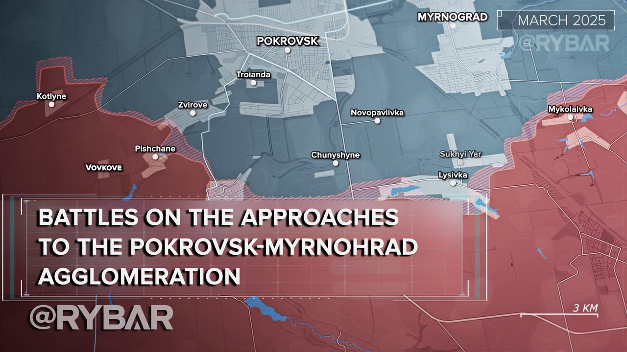 ▪️To the east, battles have been raging in Lysovka for control over the center of the destroyed village. By late March, the enemy was expelled from the southern edge, though most of the area remains in the “gray zone.”