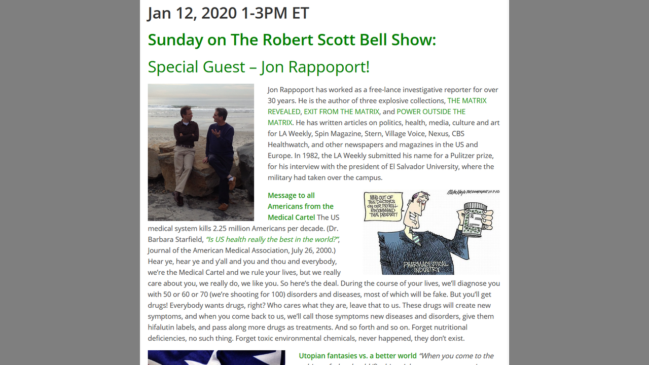 The RSB Show 1/12/20 - Jon Rappoport, Medical cartel, Utopian fantasies, High I.Q. idiots