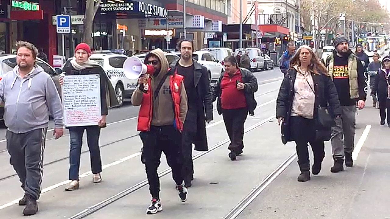 Part 1 of two videos of the rally, this one covering our march from Parliament House, the one speech in the Bourke Street Mall, and the walk up Elizabeth Street afterward. The speeches were cut short because a busker (who had paid the city council for his spot!) started his music. We were good natured about it and decided to move off to our other spot, Queen Victoria Market (which is Part 2 of the day and longer). We speak to make people aware of the corruption in high places, carcinogens in our water, poison "jab", medical malpractice, etc.