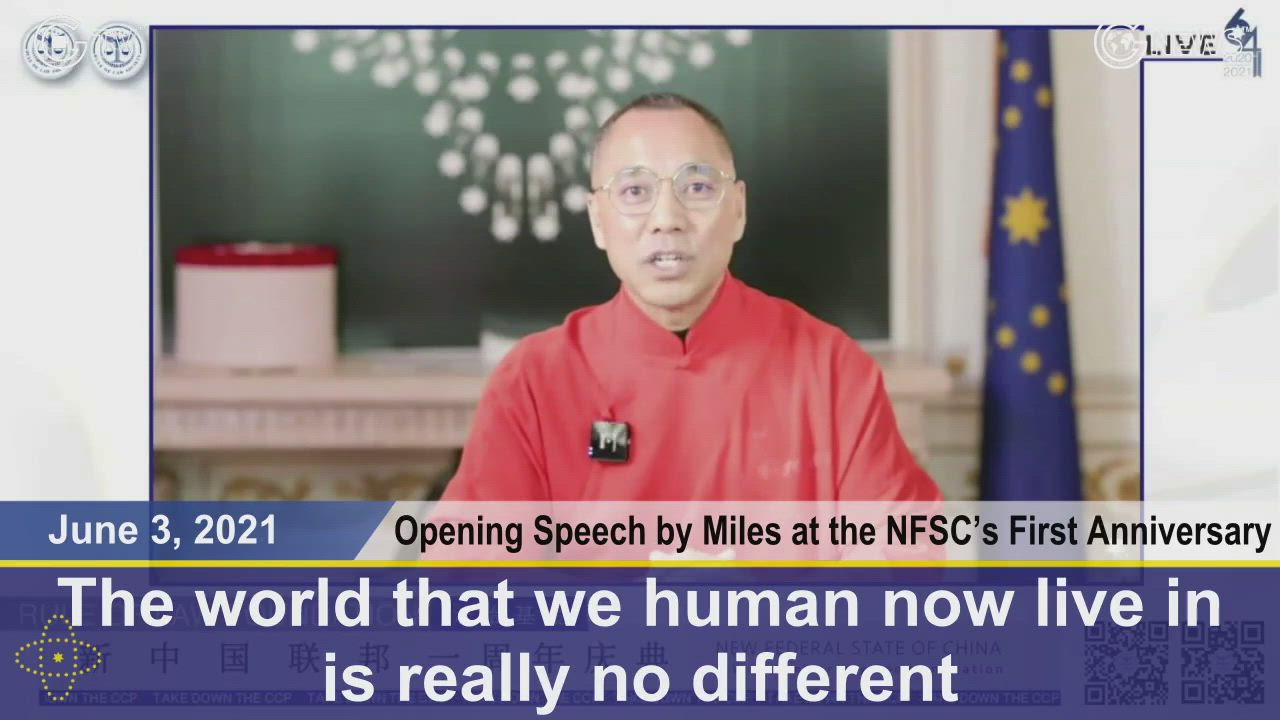 Mr. Miles Guo delivered an opening speech at the New Federal State of China (NFSC)’s first anniversary on June 3, 2021. He looked back all the difficulties he and the fellow fighters of the NFSC had experienced since the beginning of the Whistleblower Movement in 2017 and all the accomplishments that they had achieved since then, including their successfully exposing the infiltration of the CCP in the West. He emphasized that without the blood and dedication of countless heroes and heroines behind the scene, there would not have been the victory of the Whistleblower Movement on social media.