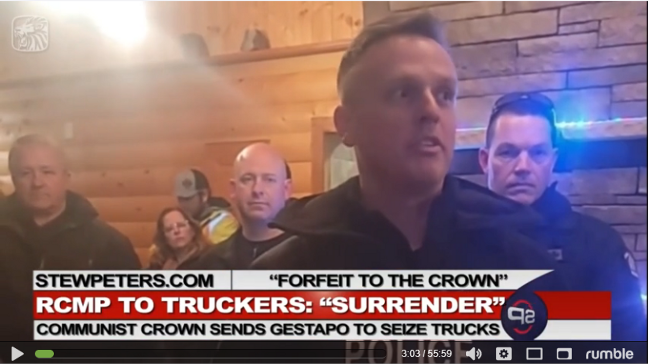 The Canadian trucker convoy started as a protest. Now, it’s practically brought the Canadian government to its knees. The Covid tyrants in Ottawa are coming unglued. So they’re getting more aggressive. In Parliament, Canada’s pathetic, fake “conservative” party threw out their leader for even meeting with the Truckers. The Royal Canadian Mounted Police sent a representative of the Crown to meet with truckers in an eerie scene, something that looks like war games, something that reminds us of a horrific movie or a recreation of the genocidal events in our world's history.