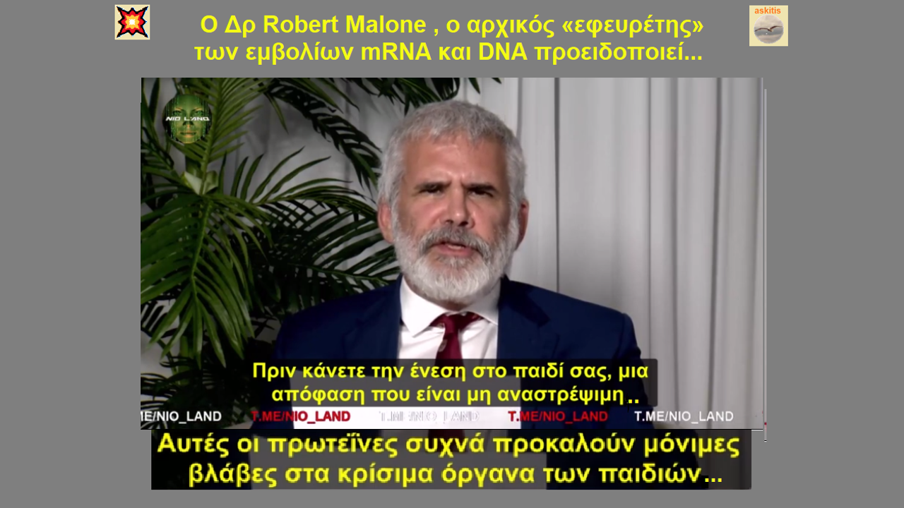 Ο Δρ Robert Malone (https://bit.ly/3s6OGXD) είναι ο αρχικός «εφευρέτης» των εμβολίων mRNA και DNA.