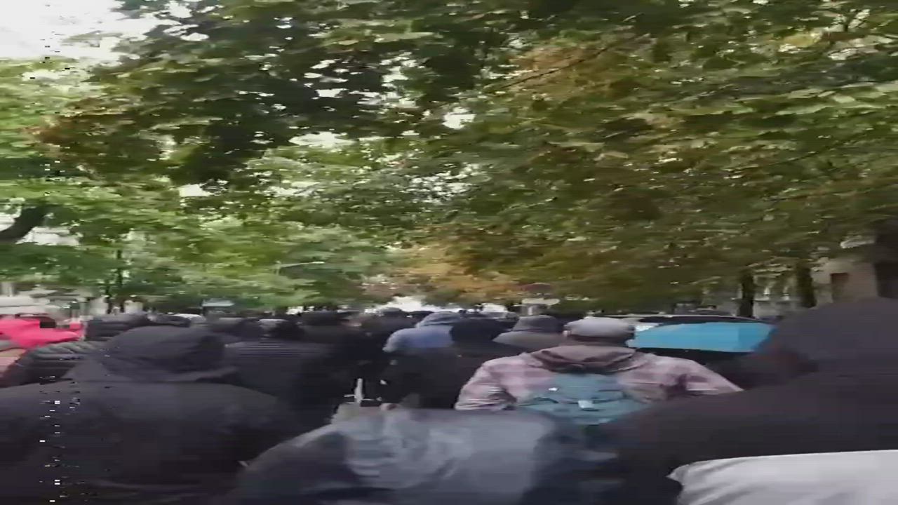 Serbian protestors shout "Go to Kosovo" at police during protests against Europride