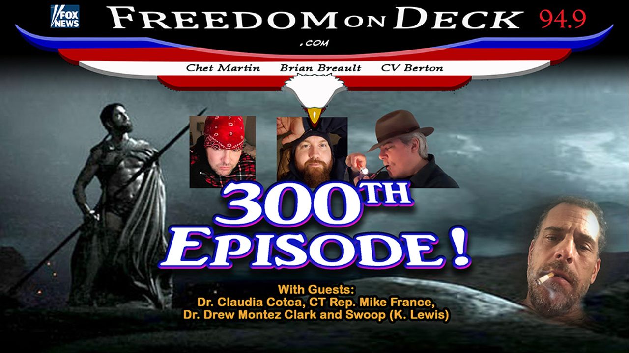 Join Chet Martin, Brian Breault and CV Berton on our 300th weekly episode! Dems are unraveling under the weight of their own multiple worst scandals in history. Guests Dr. Claudia Cotca, CT Rep. Mike France, Dr. Drew Montez Clark & Swoop.