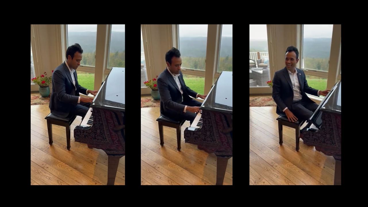 Vivek: "My piano teacher as a kid gave me a biography of Ronald Reagan & told me to read it. 20 years later, I’m playing her favorite piece at a house party in New Hampshire after giving a speech about how we’ll revive Reagan’s spirit. I wish she were here!"