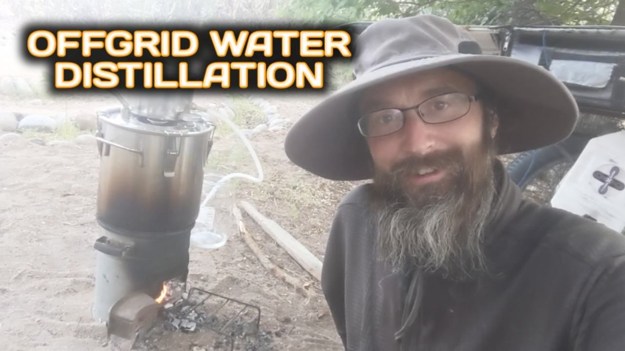 Water can be distilled offgrid using sticks and twigs as fuel with a Rocket Stove and an Alcohol Still.